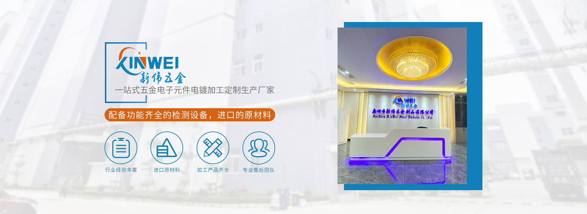 惠州市新偉五金制品有限公司(簡(jiǎn)稱(chēng):新偉五金)坐落于中國(guó)廣東省惠州市,成立于2010年,是一家專(zhuān)業(yè)電鍍各種高品質(zhì)功能性的環(huán)保五金電子元件供應(yīng)商,公司已通過(guò)ISO9001:2015及IATF16949:2016質(zhì)量體系認(rèn)證。客戶至上,品質(zhì)至上,承蒙新老客戶的信賴(lài),公司發(fā)展迅速,廠房車(chē)間面積10000平方米,現(xiàn)有員工200名,并擁有一批從事電鍍行業(yè)10年以上、經(jīng)驗(yàn)豐富的技術(shù)骨干,為客戶解決許多疑難問(wèn)題,另有一支品質(zhì)工程小組,專(zhuān)業(yè)檢測(cè)產(chǎn)品品質(zhì),杜絕不良品外流,深受客戶好評(píng)。